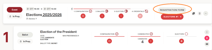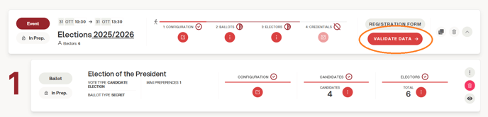 After both the electoral event and the configuration page are ready, it is possible to click on VALIDATE DATA. From this moment on, it will be possible to start registering.