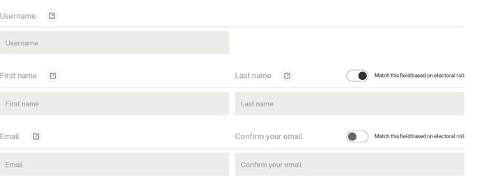 The only field that must necessarily correspond to the pre-loaded data is the Username. However, it is possible to choose to also make the First Name, Last Name, Email, and Info fields verifiable. In the latter case, Eligo checks that the pre-loaded data matches the data entered by the registering user, and, if they do not match, it would prevent the user from finalizing the registration.