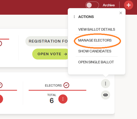 Once the registration is complete, the administrator can check from the backoffice for any changes to the non-verified fields by Eligo, which were updated directly by the user at the time of registration. To do this, simply click on "manage voters" from the event bar: