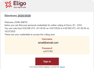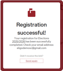 They will receive a confirmation message, and at the same time, the credentials to access the vote will be sent to the email provided during the registration phase.