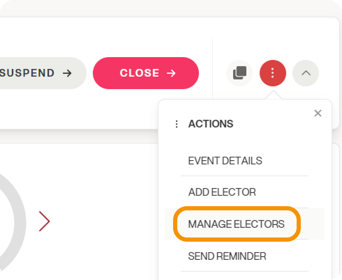 Once the registration is complete, the administrator can check from the backoffice for any changes to the non-verified fields by Eligo, which were updated directly by the user at the time of registration. To do this, simply click on "manage voters" from the event bar: