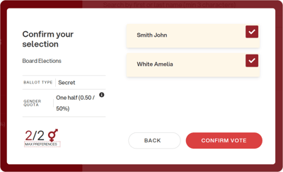If, on the other hand, gender representation is respected, the system will display the usual screen to proceed with vote confirmation: