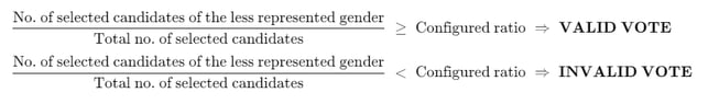 If this module is enabled, it is possible to set a predefined ratio between the number of preferences that the voter must assign to male and female candidates.