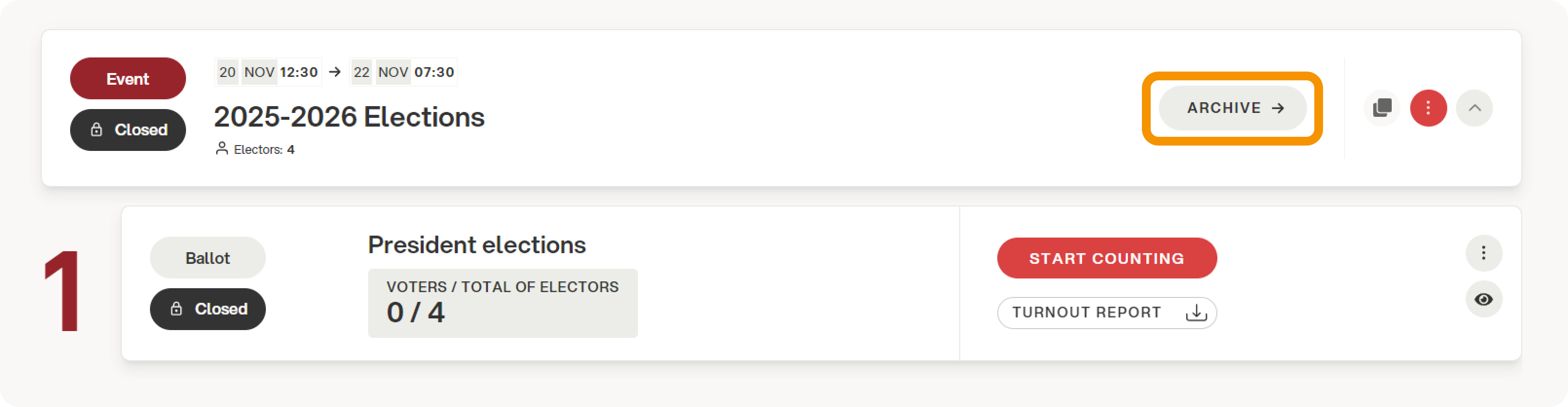 Once the election has been closed, you can archive it using the dedicated “Archive” button: