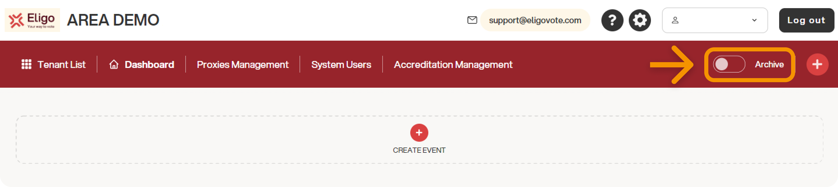 To view archived voting events, simply click on the “Archive” button located on the dashboard in the upper right corner.