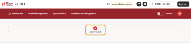 To add a new electoral event, simply click the “+ Create event” button from the tenant dashboard: