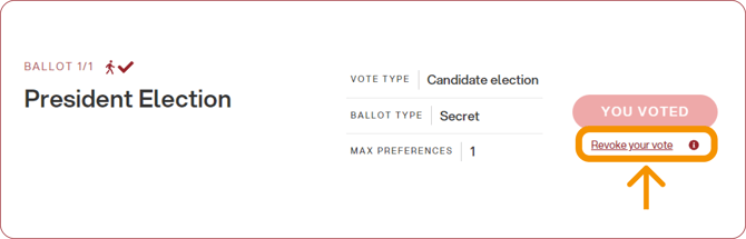 The voting process works as usual, but after confirming their vote, the voter will see an option on the main screen allowing them to revoke their vote.