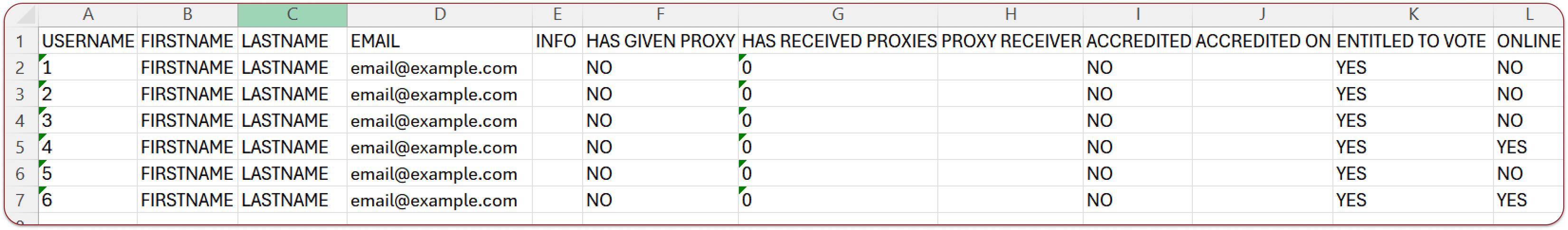 At this point, the attendance monitoring start time will be displayed, and it will be possible to view the counter both for the entire event and for individual voting ballots. This feature is particularly useful when the lists of voters differ between ballots or when weighted voting is enabled.