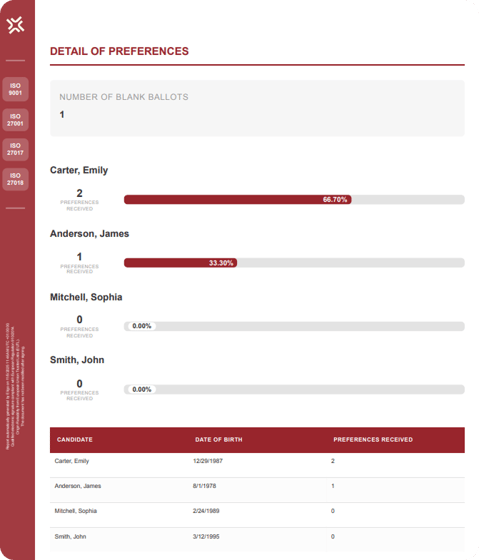 Candidate Preferences – the votes assigned to each candidate, listed in order of preference;