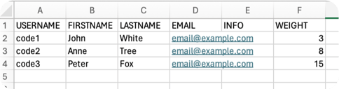 At this point you will also need to specify the representation weight on the Excel file of the list of participants.