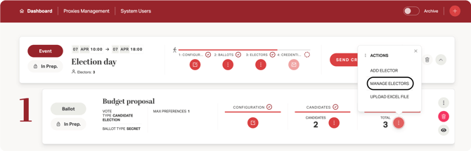 under " Electors" in the bar on the ballot. A drop-down menu will open; select "Manage Electors."