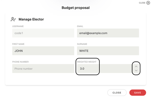 If you want to manually add a voter to a ballot instead, you must fill in the appropriate field with the weight assigned to the voter for that ballot: