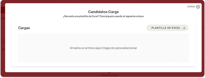 En el caso de votaciones con un gran número de candidatos, es aconsejable subirlos compilando un archivo excel en la ventana de subida: