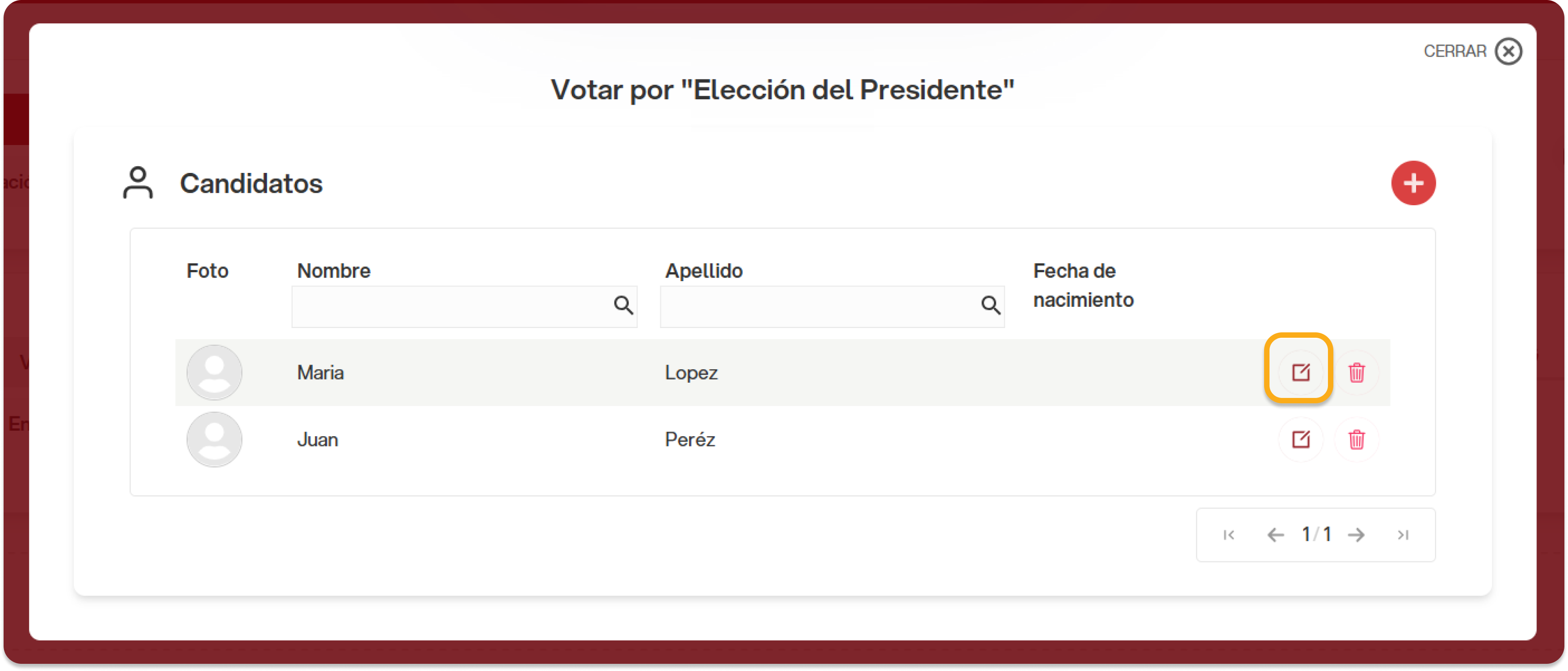 Luego, en la fila correspondiente al candidato, haga clic en el símbolo para modificar: