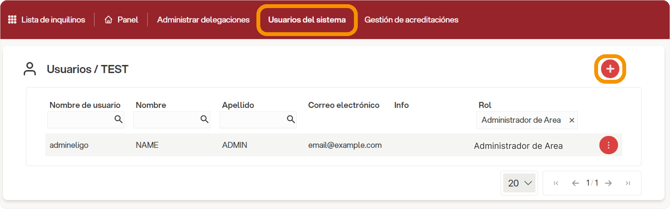 Para añadir un nuevo rol, primero hay que ir a “Usuarios del Sistema” y hacer clic en el icono “+”.