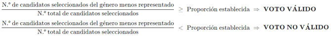 El elector puede expresar sus preferencias libremente, pero el sistema impide la confirmación del voto si las preferencias seleccionadas no respetan la proporción configurada.