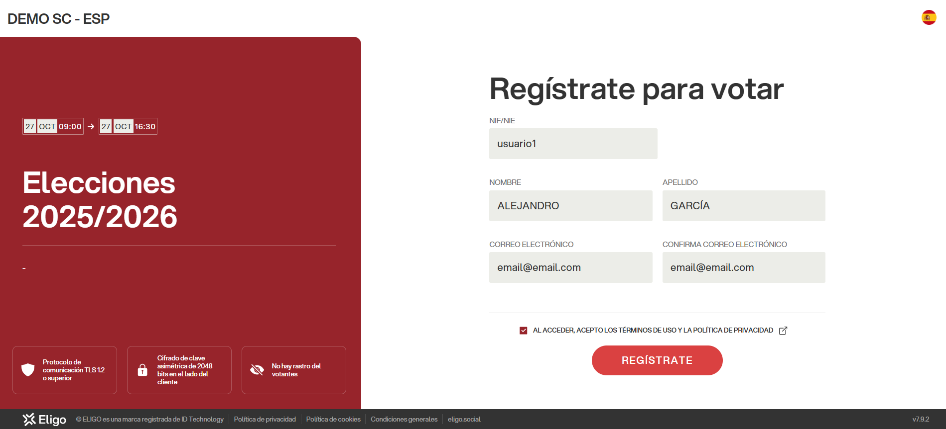 En este último caso, Eligo comprueba que los datos precargados coincidan con los introducidos por el usuario que se registra, y, si no coincidieran, impediría al usuario completar el registro.