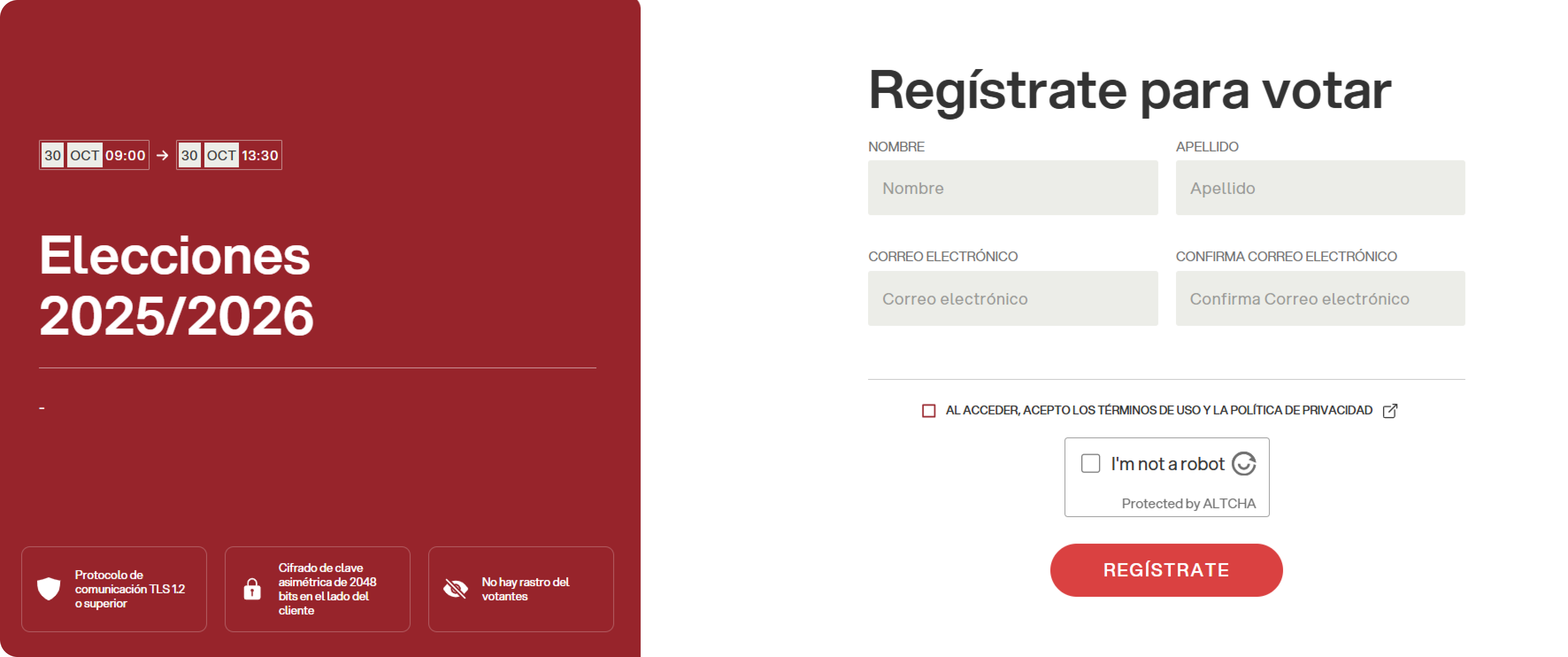 - Correo electrónico (Email): será necesario para recibir las credenciales de voto;