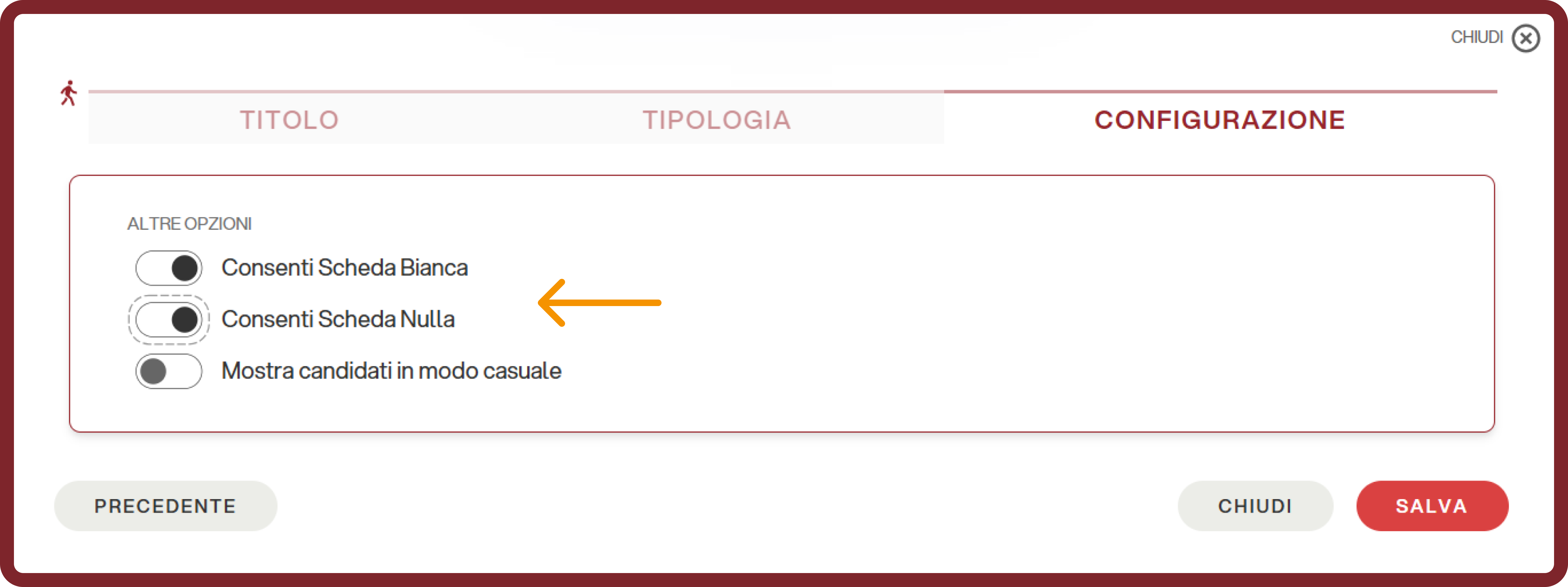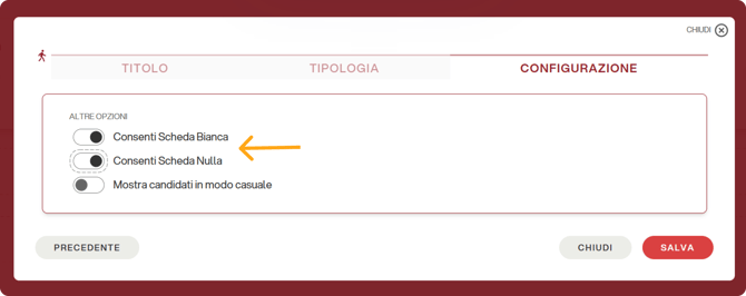 Nella terza sezione è possibile configurare l'abilitazione di Scheda Bianca e/o Scheda Nulla.
