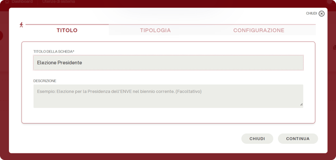 La prima sezione va compilata con il titolo della scheda di voto (obbligatorio) e una descrizione (facoltativa).
