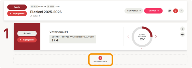 Questo articolo spiega come aprire o aggiungere una nuova scheda di voto durante una sessione di voto già attiva, utile in caso di parità o per gestire votazioni aggiuntive in tempo reale.