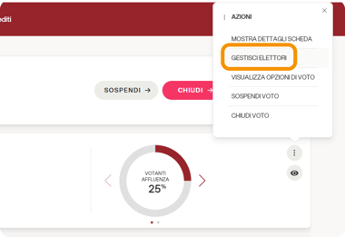 STEP 1: dall'icona (⋮) a destra della scheda, cliccare su "Gestisci elettori":