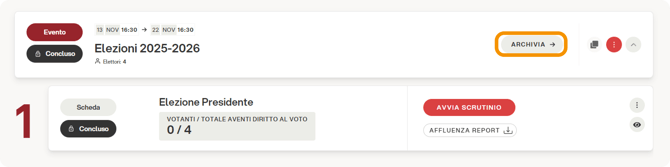 Una volta che l'elezione viene chiusa, è possibile archiviarla tramite il pulsante apposito "Archivia":
