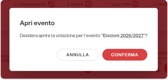 A questo punto comparirà un messaggio di conferma che consente di evitare che le votazioni siano aperte per errore. Cliccare su "Conferma":