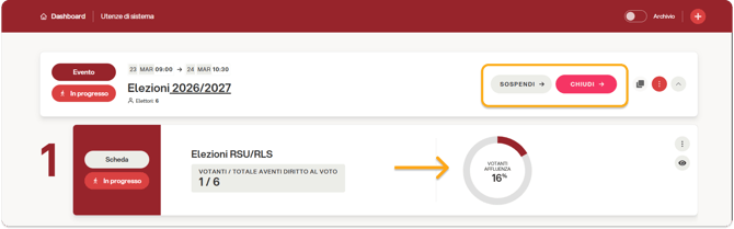 - I pulsanti di sospensione e chiusura delle votazioni.