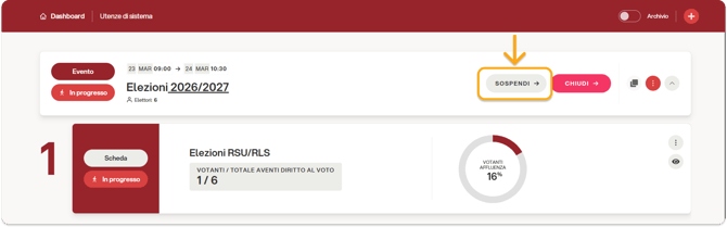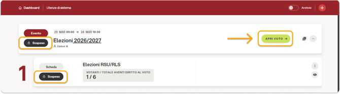 A questo punto lo stato della votazione sarà impostato su "Sospeso". Basterà cliccare su "Apri voto" per riprendere la votazione: