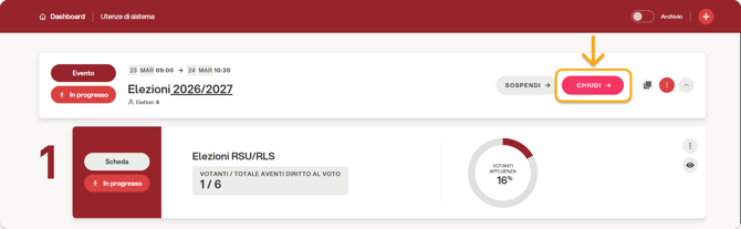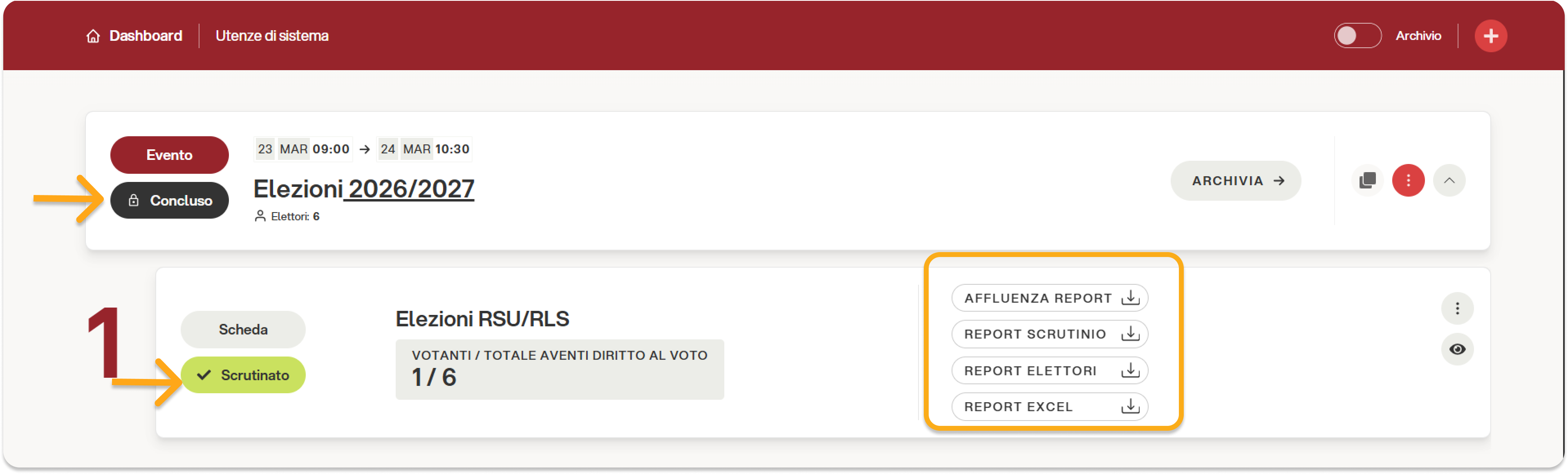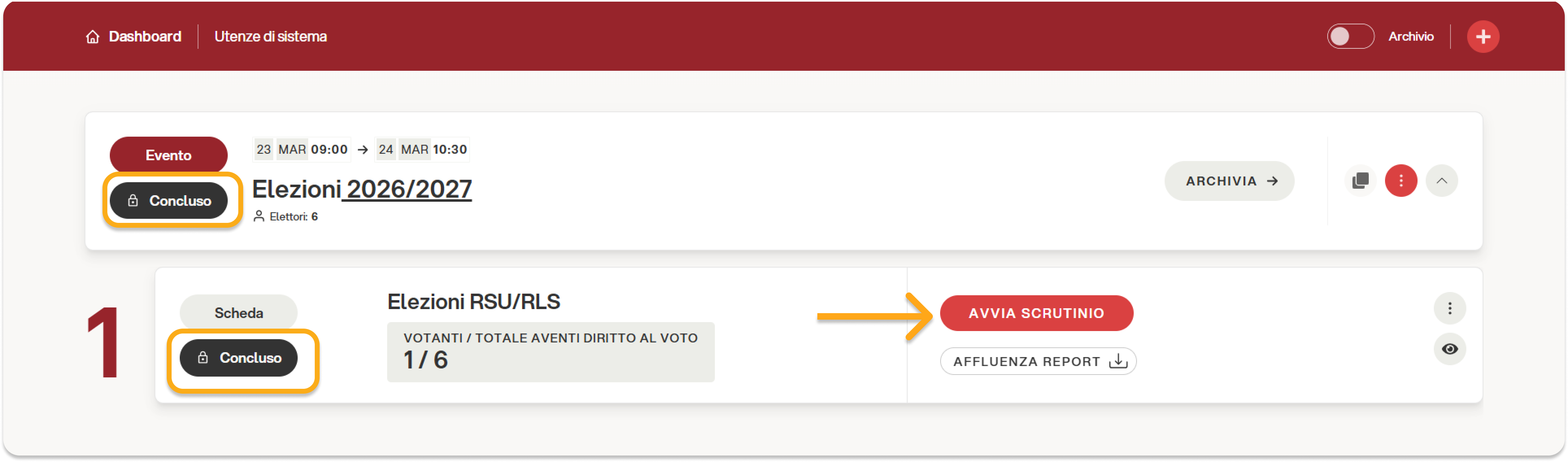 Dopo l'avvio dello scrutinio, infatti, lo stato dell'evento sarà sempre impostato su "Concluso" mentre quello della votazione cambierà in "Scrutinata".