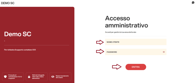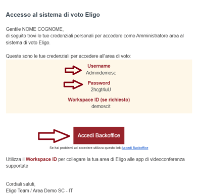 Al momento dell'attivazione della tua area di voto, riceverai delle credenziali che ti serviranno per accedere al Backoffice della piattaforma per gestire le votazioni.