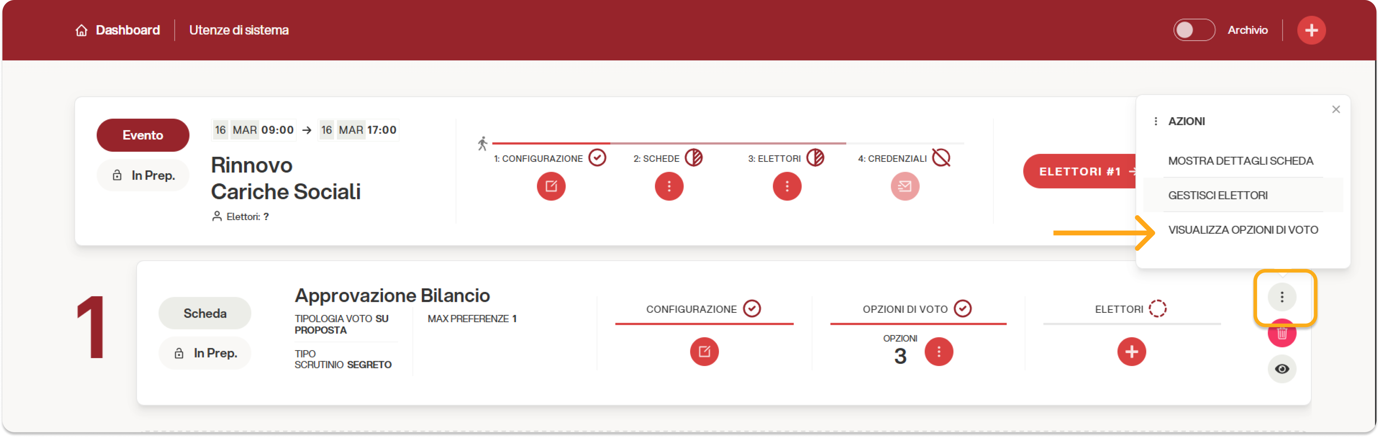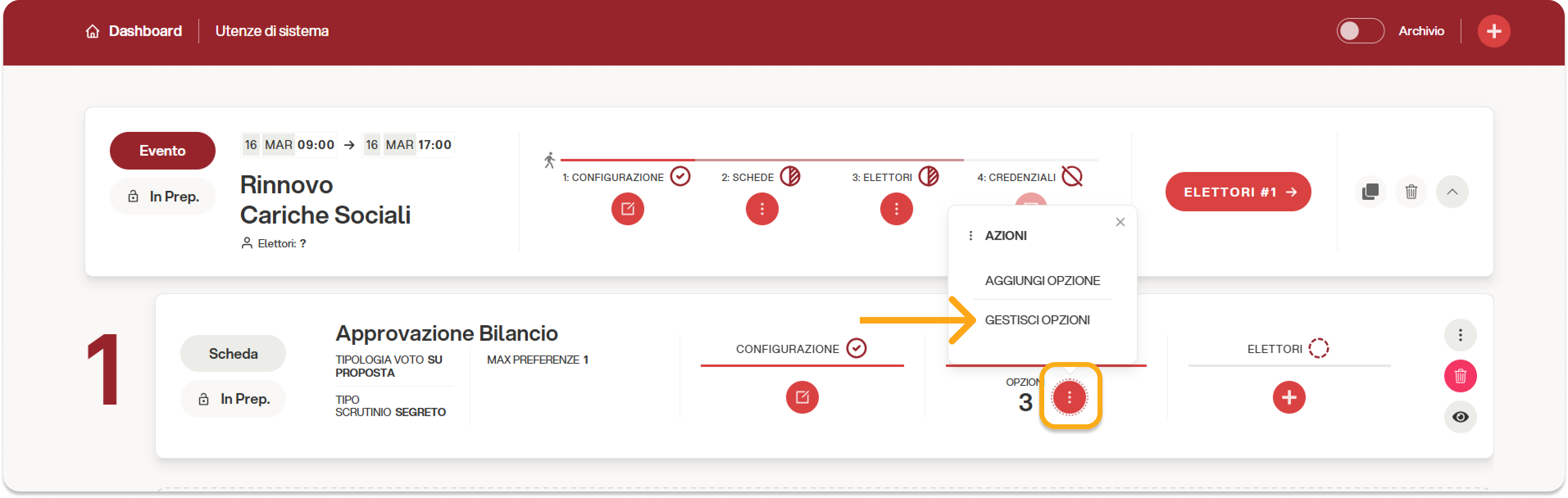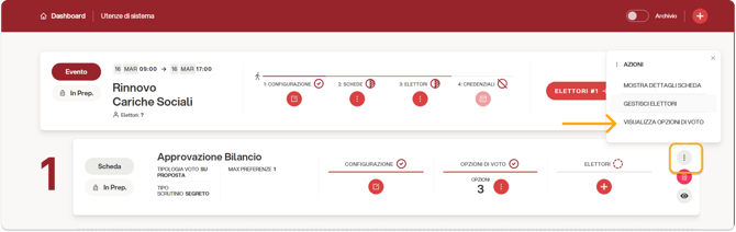 O cliccando su "Gestisci opzioni di voto" dal menù corrispondente sulla scheda di voto: