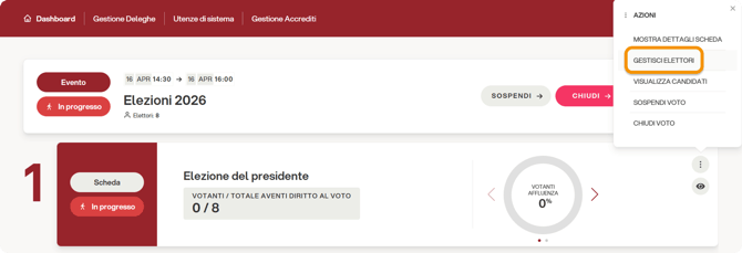 Nella barra della scheda (o dell'evento) cliccare su "gestisci elettori":