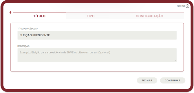 A primeira seção deve ser preenchida com o título da cédula de voto (obrigatório) e uma descrição (opcional).