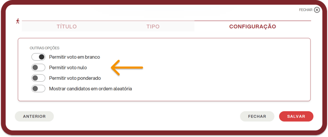 Na terceira seção, é possível configurar a habilitação do voto em branco e/ou do voto nulo.
