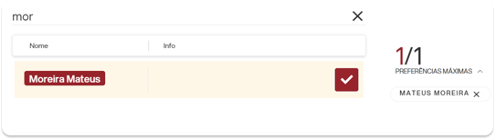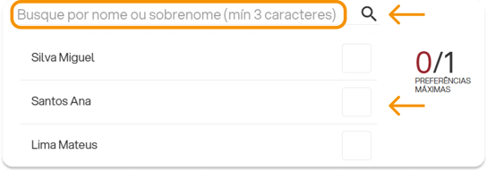 Ao digitar pelo menos 3 caracteres do nome ou sobrenome de um dos elegíveis na barra de pesquisa, o eleitor poderá visualizar todos aqueles que contenham esses caracteres no nome e selecionar uma preferência.