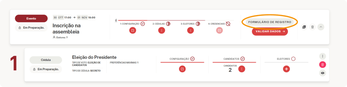 Na barra do evento, clique em FORMULÁRIO DE REGISTRO: