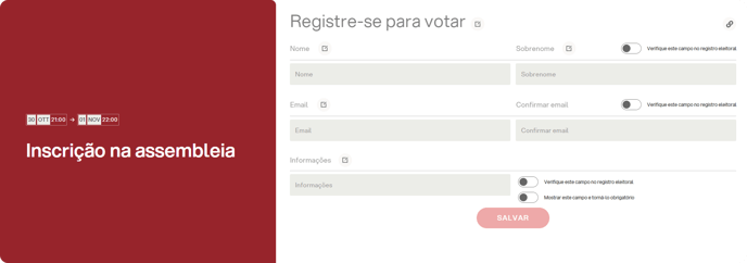 Quando o módulo dedicado está ativo, é possível permitir o registro livre dos usuários com direito a voto.