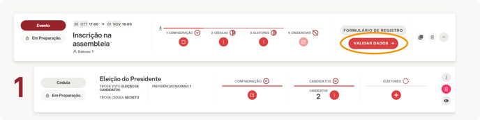 Após preparar tanto o evento eleitoral quanto a página de configuração, clique em VALIDAR DADOS.