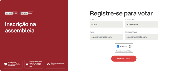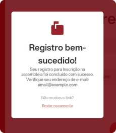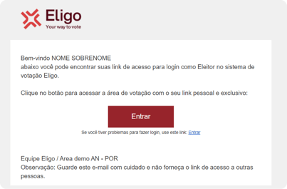 Ele receberá uma mensagem de confirmação e, ao mesmo tempo, serão enviadas as credenciais de acesso à votação para o email informado durante o registro.