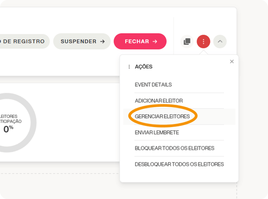 Para isso, basta clicar em “gerenciar eleitores” na barra do evento: