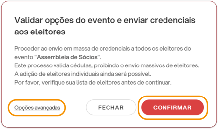 Ao clicar no botão “Confirmar” à direita, as credenciais (ou o link de acesso direto, dependendo das configurações da sua área de voto) serão enviadas.